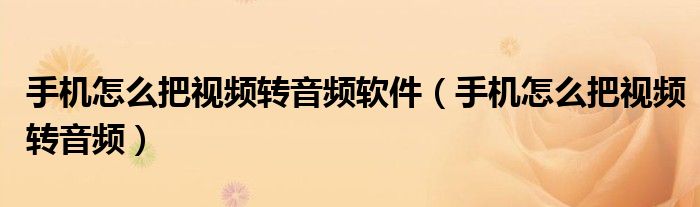 大家好,小晋来为大家解答以下问题,关于手机怎么把视频转音频软件,手机怎么把视频转音频很多人还不知道,今天让我们一起来看看吧!