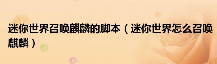 大家好,小晋来为大家解答以下问题,关于迷你世界召唤麒麟的脚本,迷你世界怎么召唤麒麟很多人还不知道,今天让我们一起来看看吧!