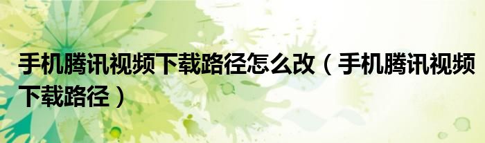 手机腾讯视频下载路径怎么改(手机腾讯视频下载路径)