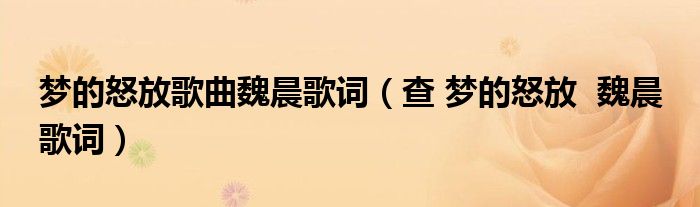 关于梦的怒放歌曲魏晨歌词,查 梦的怒放 魏晨 歌词这个很多人还不知道,今天菲菲来为大家解答以上的问题,现在让我们一起来看看吧!