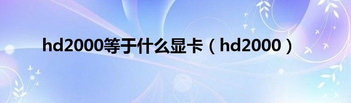 hd2000等于什么显卡(hd2000)