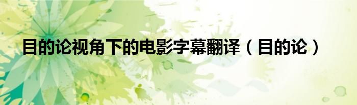 关于目的论视角下的电影字幕翻译,目的论这个很多人还不知道,今天菲菲来为大家解答以上的问题,现在让我们一起来看看吧!