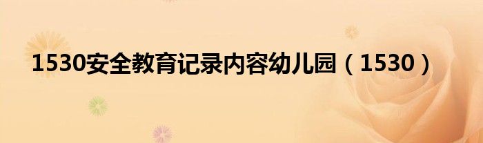 关于1530安全教育记录内容幼儿园,1530这个很多人还不知道,今天菲菲来为大家解答以上的问题,现在让我们一起来看看吧!