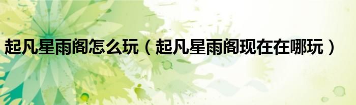起凡星雨阁怎么玩(起凡星雨阁现在在哪玩)