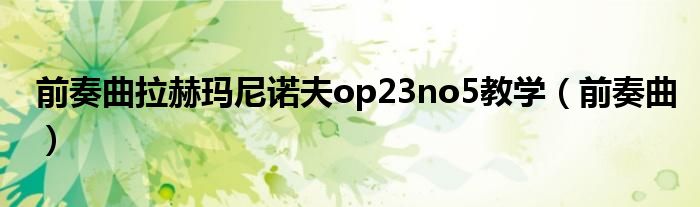 关于前奏曲拉赫玛尼诺夫op23no5教学,前奏曲这个很多人还不知道,今天菲菲来为大家解答以上的问题,现在让我们一起来看看吧!