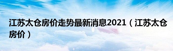 江苏太仓房价走势最新消息2021(江苏太仓房价)