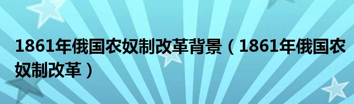 关于1861年俄国农奴制改革背景,1861年俄国农奴制改革这个很多人还不知道,今天菲菲来为大家解答以上的问题,现在让我们一起来看看吧!