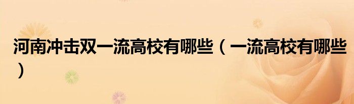 河南冲击双一流高校有哪些(一流高校有哪些)