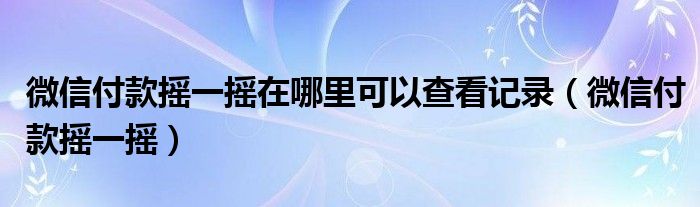 大家好,小晋来为大家解答以下问题,关于微信付款摇一摇在哪里可以查看记录,微信付款摇一摇很多人还不知道,今天让我们一起来看看吧!