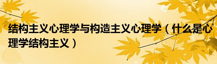 关于结构主义心理学与构造主义心理学,什么是心理学结构主义这个很多人还不知道,今天菲菲来为大家解答以上的问题,现在让我们一起来看看吧!