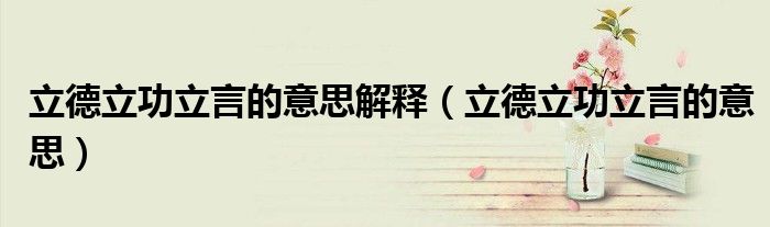 关于立德立功立言的意思解释,立德立功立言的意思这个很多人还不知道,今天菲菲来为大家解答以上的问题,现在让我们一起来看看吧!