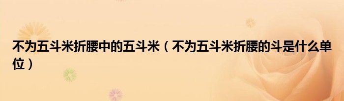 关于不为五斗米折腰中的五斗米,不为五斗米折腰的斗是什么单位这个很多人还不知道,今天菲菲来为大家解答以上的问题,现在让我们一起来看看吧!