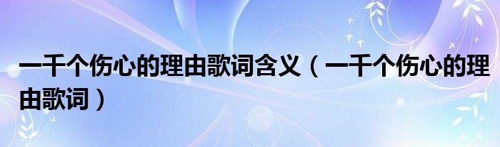 关于一千个伤心的理由歌词含义,一千个伤心的理由歌词这个很多人还不知道,今天菲菲来为大家解答以上的问题,现在让我们一起来看看吧!