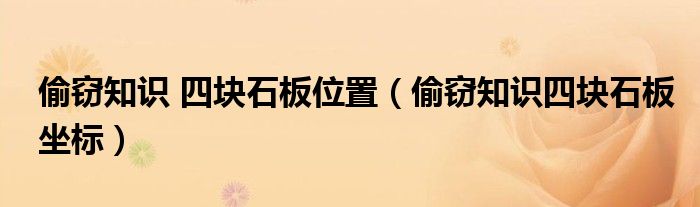关于偷窃知识 四块石板位置,偷窃知识四块石板坐标这个很多人还不知道,今天菲菲来为大家解答以上的问题,现在让我们一起来看看吧!