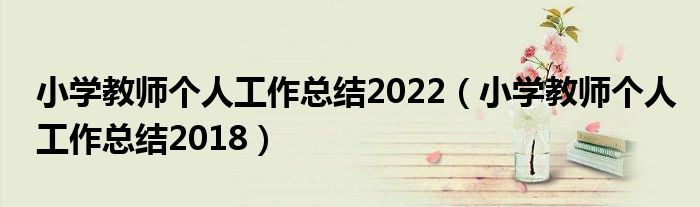 关于小学教师个人工作总结2022,小学教师个人工作总结2018这个很多人还不知道,今天菲菲来为大家解答以上的问题,现在让我们一起来看看吧!