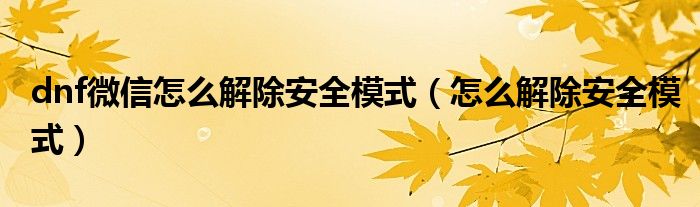 大家好,来宝来为大家解答以下问题,dnf微信怎么解除安全模式,怎么解除安全模式很多人还不知道,今天让我们一起来看看吧!
