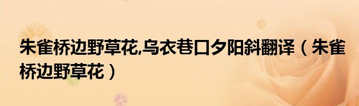 朱雀桥边野草花,乌衣巷口夕阳斜翻译(朱雀桥边野草花)
