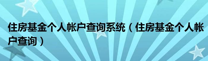 住房基金个人帐户查询系统(住房基金个人帐户查询)