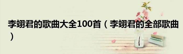 关于李翊君的歌曲大全100首,李翊君的全部歌曲这个很多人还不知道,今天菲菲来为大家解答以上的问题,现在让我们一起来看看吧!