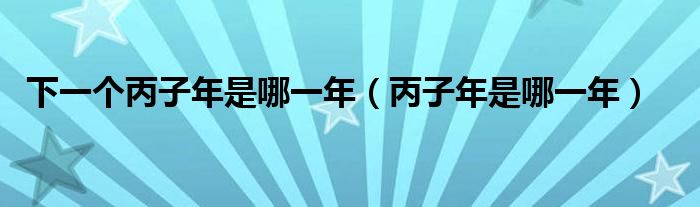 下一个丙子年是哪一年(丙子年是哪一年)