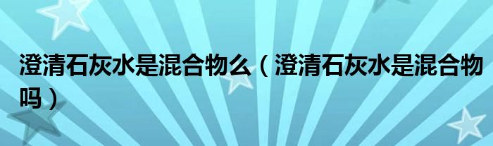 大家好,小晋来为大家解答以下问题,关于澄清石灰水是混合物么,澄清石灰水是混合物吗很多人还不知道,今天让我们一起来看看吧!