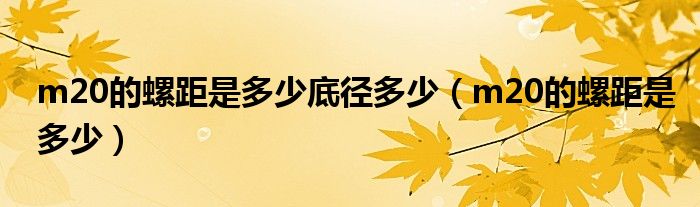 大家好,小晋来为大家解答以下问题,关于m20的螺距是多少底径多少,m20的螺距是多少很多人还不知道,今天让我们一起来看看吧!