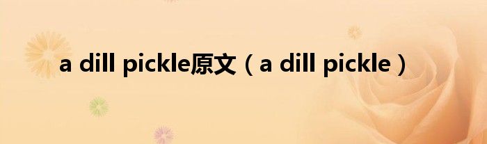 关于a dill pickle原文,a dill pickle这个很多人还不知道,今天菲菲来为大家解答以上的问题,现在让我们一起来看看吧!