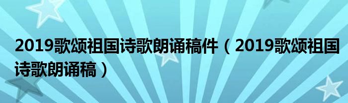 关于2019歌颂祖国诗歌朗诵稿件,2019歌颂祖国诗歌朗诵稿这个很多人还不知道,今天菲菲来为大家解答以上的问题,现在让我们一起来看看吧!