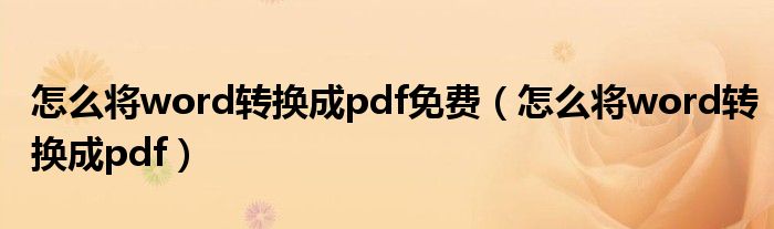 关于怎么将word转换成pdf免费,怎么将word转换成pdf这个很多人还不知道,今天菲菲来为大家解答以上的问题,现在让我们一起来看看吧!
