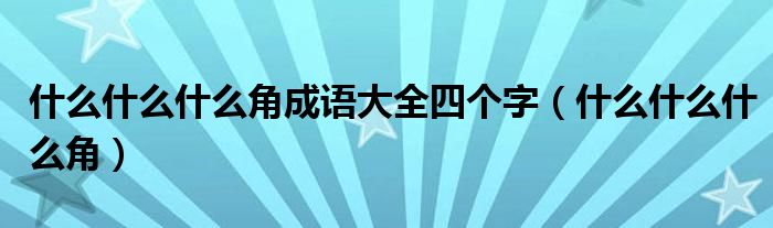 大家好,小晋来为大家解答以下问题,关于什么什么什么角成语大全四个字,什么什么什么角很多人还不知道,今天让我们一起来看看吧!