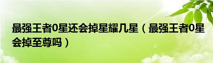 大家好,小晋来为大家解答以下问题,关于最强王者0星还会掉星耀几星,最强王者0星会掉至尊吗很多人还不知道,今天让我们一起来看看吧!